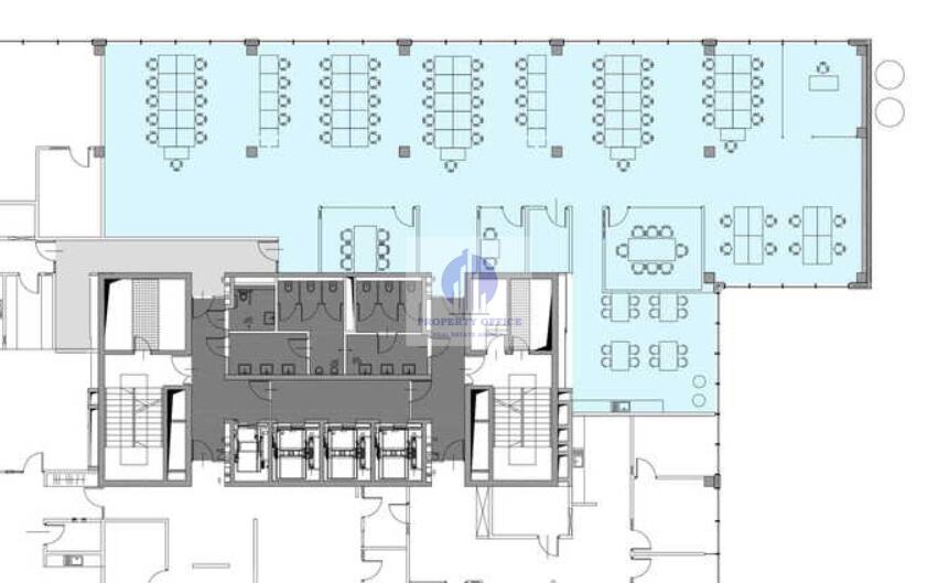 Funkcjonalna i dobrze doświetlona powierzchnia biurowa w układzie mieszanym, składającym się z dużej części open space oraz zamykanych, przeszklonych gabinetów lub salek do spotkań.