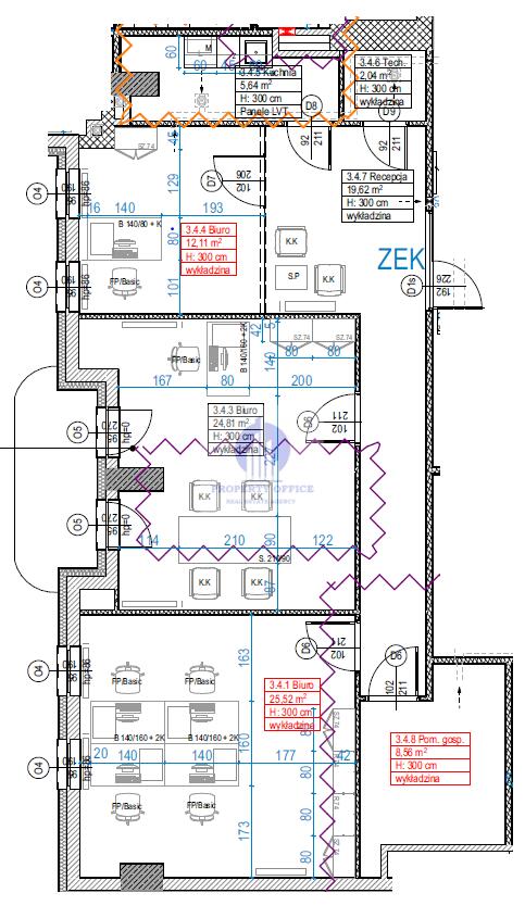 -3 pokoje biurowe,