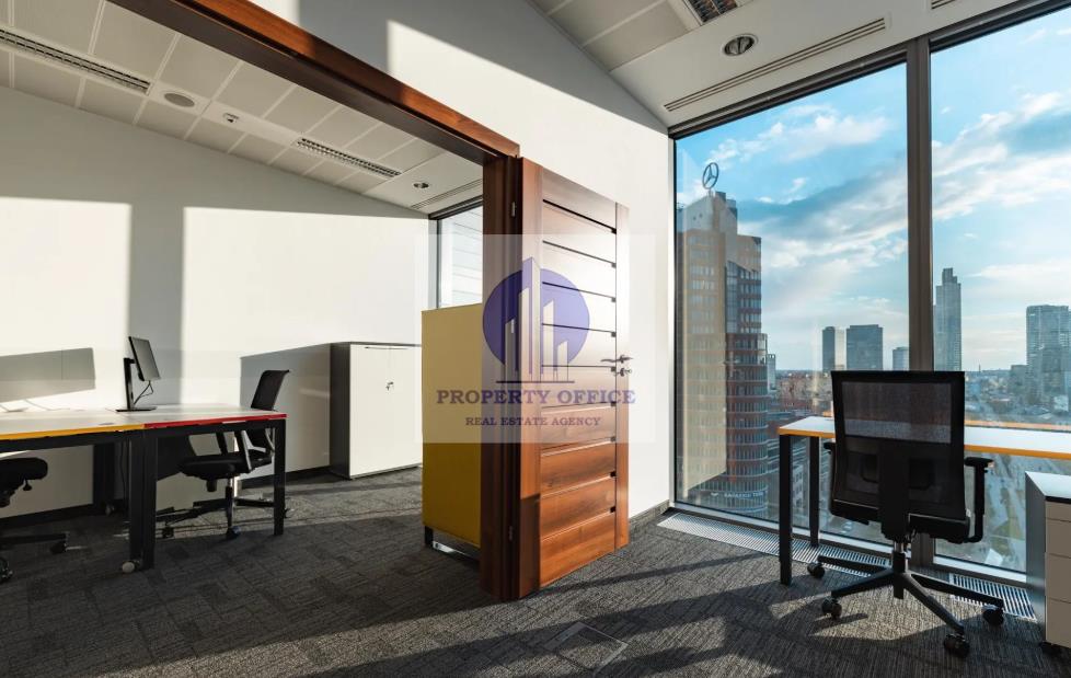 Do wynajęcia: biuro serwisowane dla 8 osób na 12 piętrze nowoczesnego biurowca w pobliżu stacji metra Rondo ONZ, na warszawskim Śródmieściu.