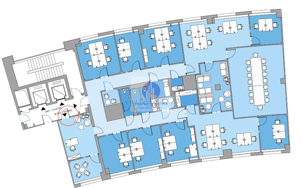 Powierzchnia biurowa w układzie gabinetowym: