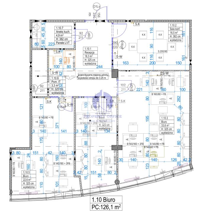 -3 pokoje biurowe,