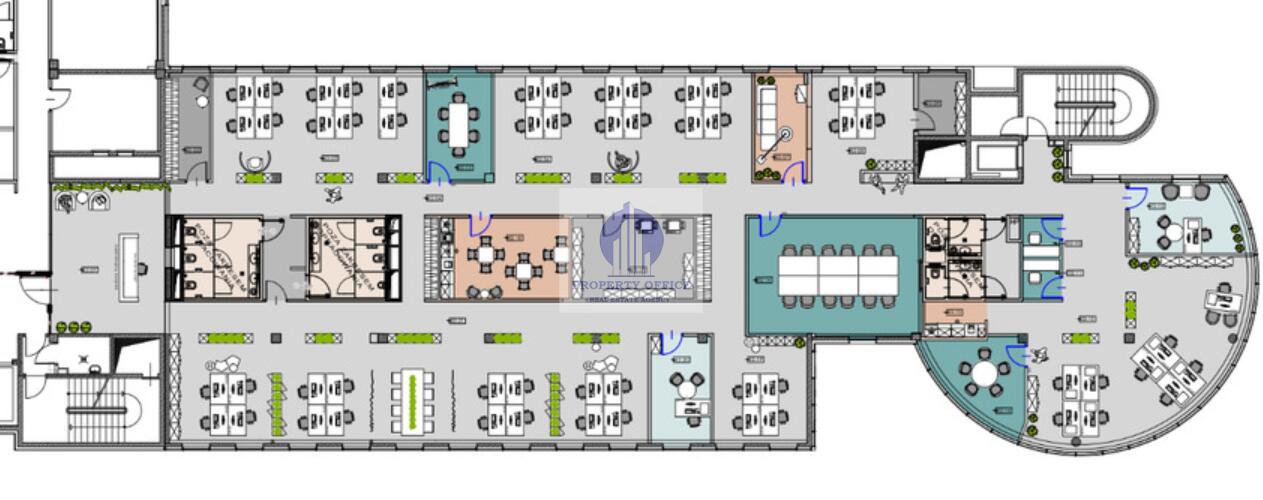 Obecny układ obejmuje funkcjonalny open space, kilka sali konferencyjnych, dwie kuchnie oraz dwa niezależne piony toalet.