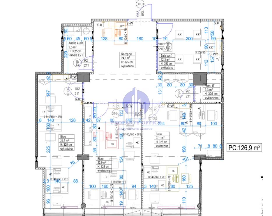W standardzie wykończenia znajdują się m.in.: klimatyzacja, podwieszane sufity, okablowanie oraz uchylne okna.