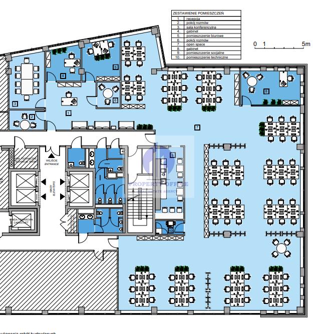 Powierzchnia typowego piętra pozwala na swobodną aranżację przestrzeni biurowej tak w opcji powierzchni otwartych, jak i w podziale na pokoje.