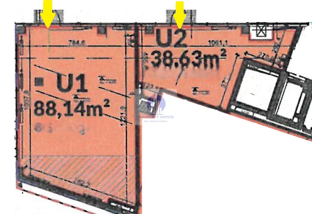 Dwa połączone lokale: jeden wielkości 88,14 m2; drugi o pow. 38,63 m2