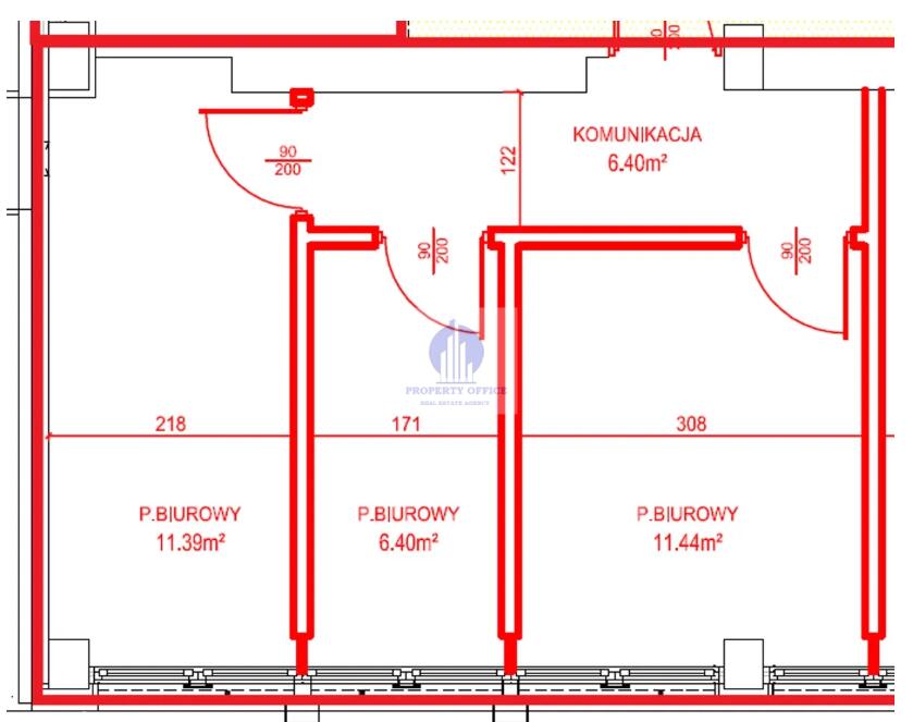 Oferowany lokal to moduł biurowy składający się z trzech pokoi połączonych wewnętrznym korytarzem.