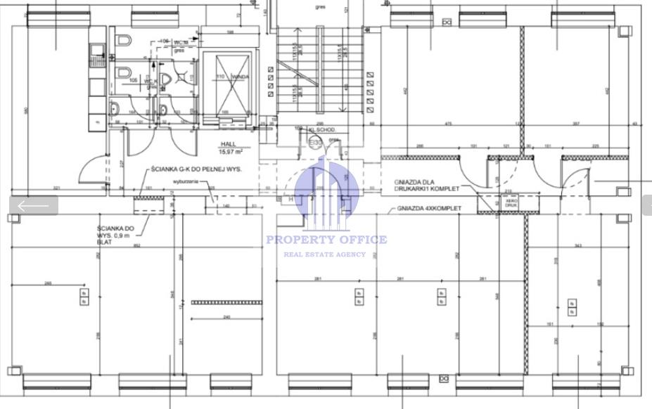 -2 duże pokoje biurowe(w jednym z nich dodatkowo wydzielono 2 przeszklone pomieszczenia).