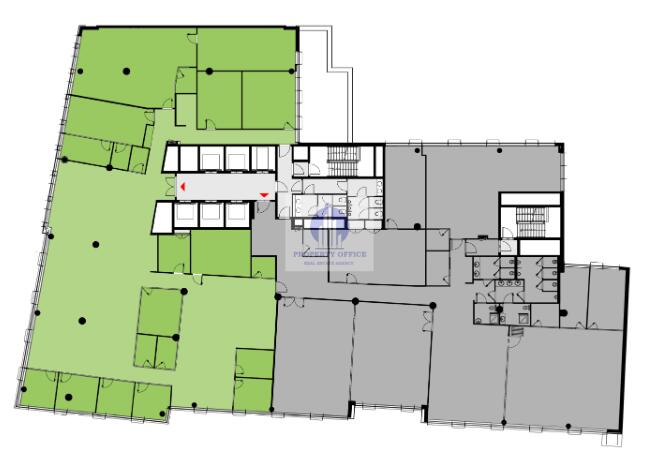 Dobrze zaprojektowana przestrzeń z doskonałym doświetleniem, dzięki przeszklonej fasadzie budynku, zapewnia komfortowe i przyjazne warunki pracy.