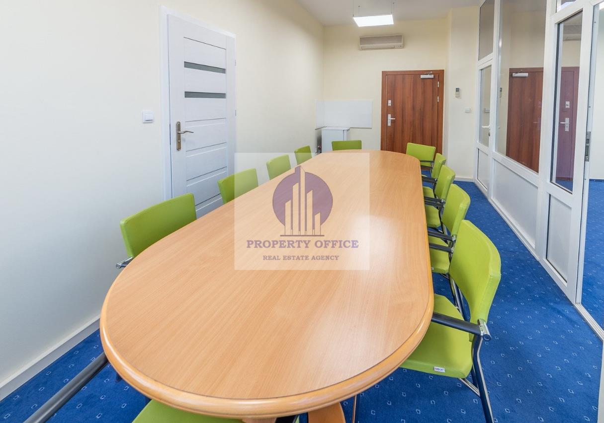 Sala konferencyjna (w pełni wyposażona, dla 14 osób, aneks kuchenny, 2 toalety): 70 zł/h. netto
