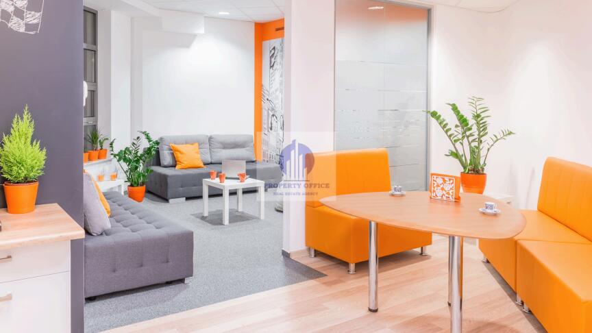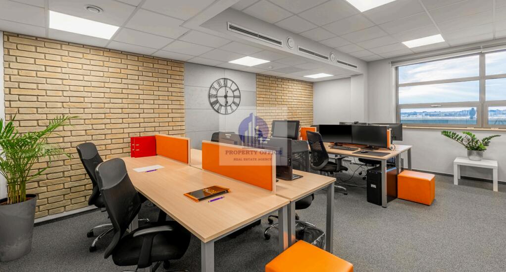 Powierzchnia w pełni wyposażona w biurka, fotele i szafy na dokumenty.