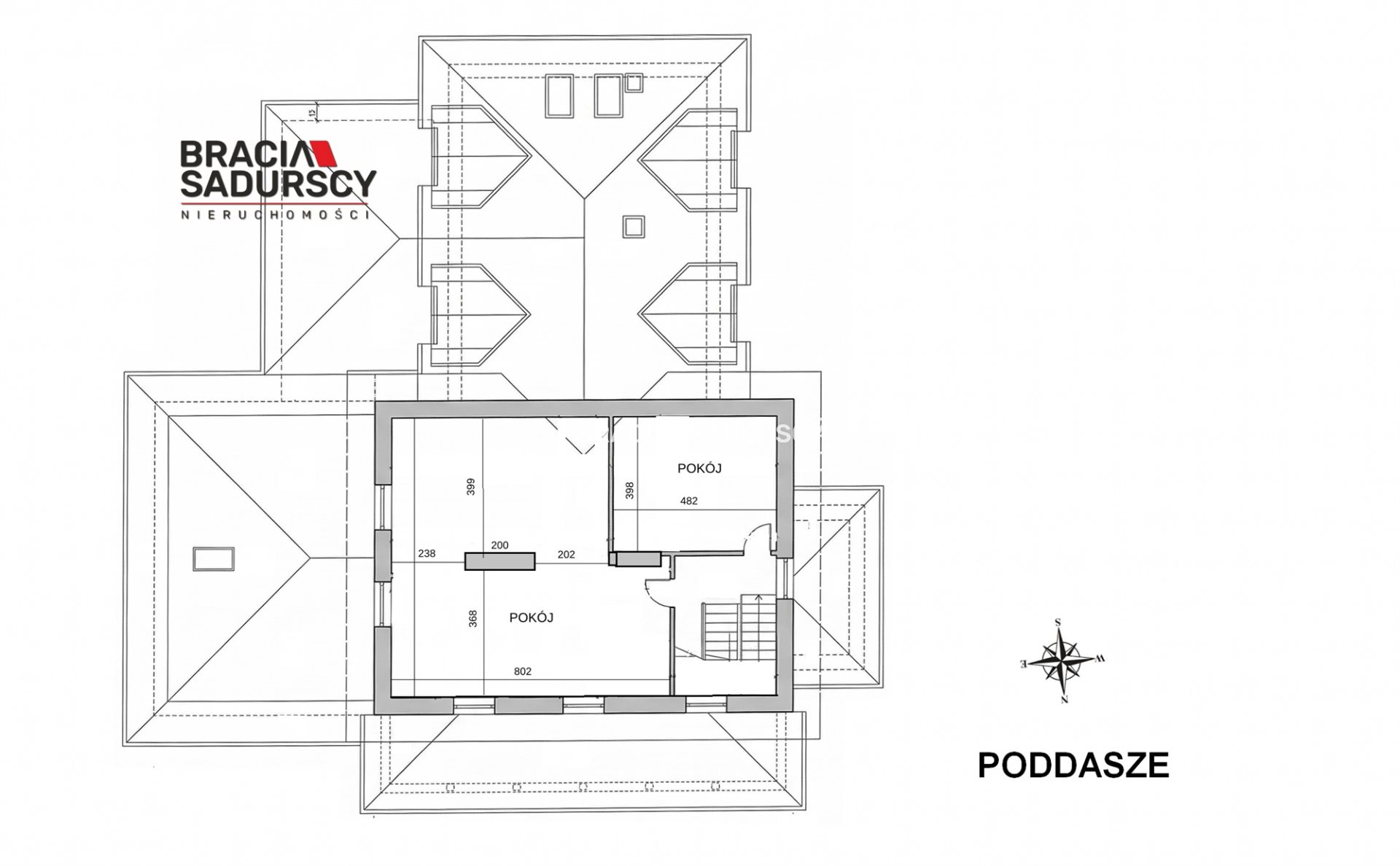 Poddasze (66,06 m²): 2 pokoje - możliwość adaptacji na pokoje gościnne, pracownie lub powierzchnię biurową.