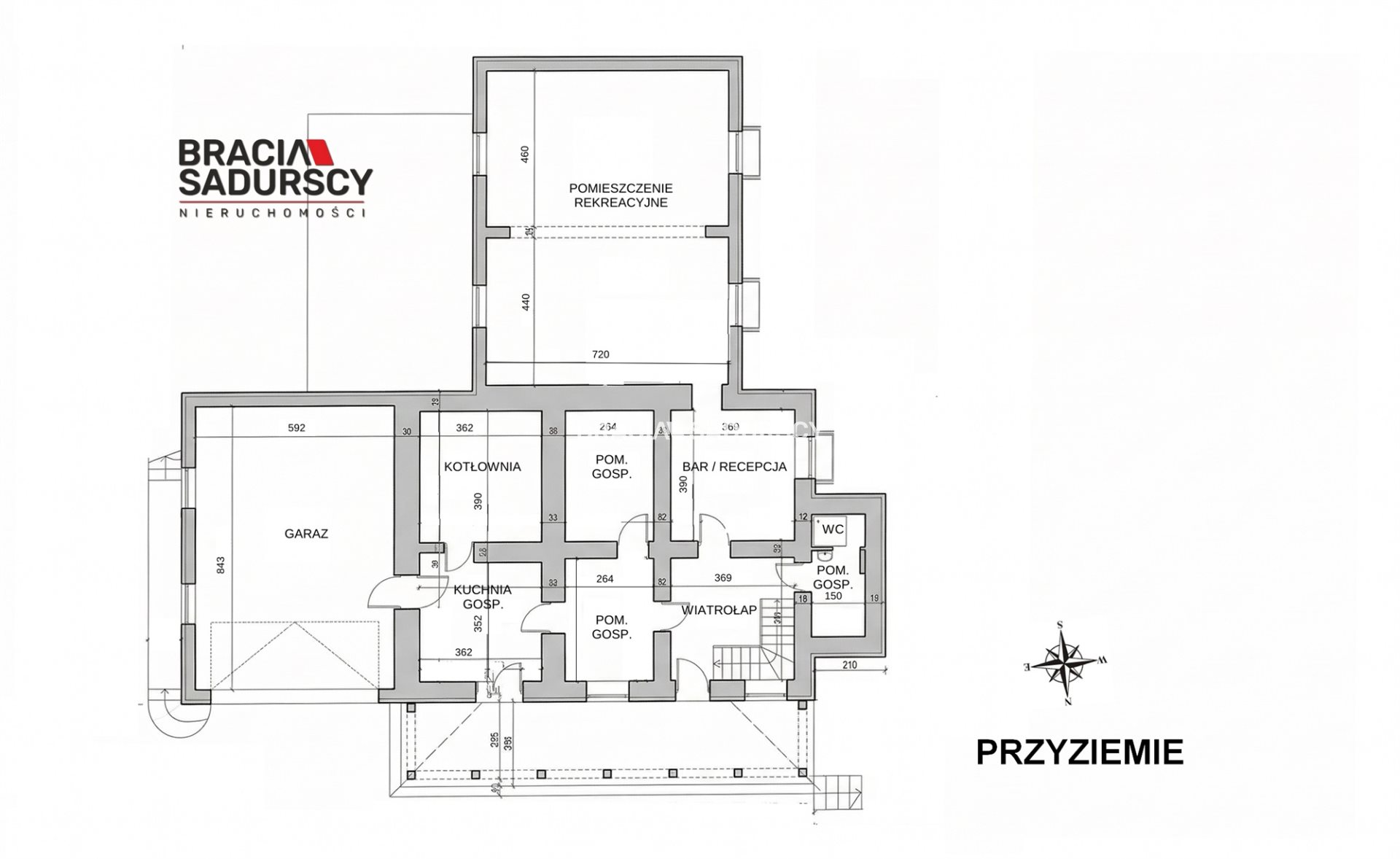 Piwnice (195,33 m²): garaż 50 m², pomieszczenie rekreacyjne 67 m², 4 pomieszczenia gospodarcze do adaptacji - możliwość przekształcenia na dodatkowe lokale lub strefy usługowe.