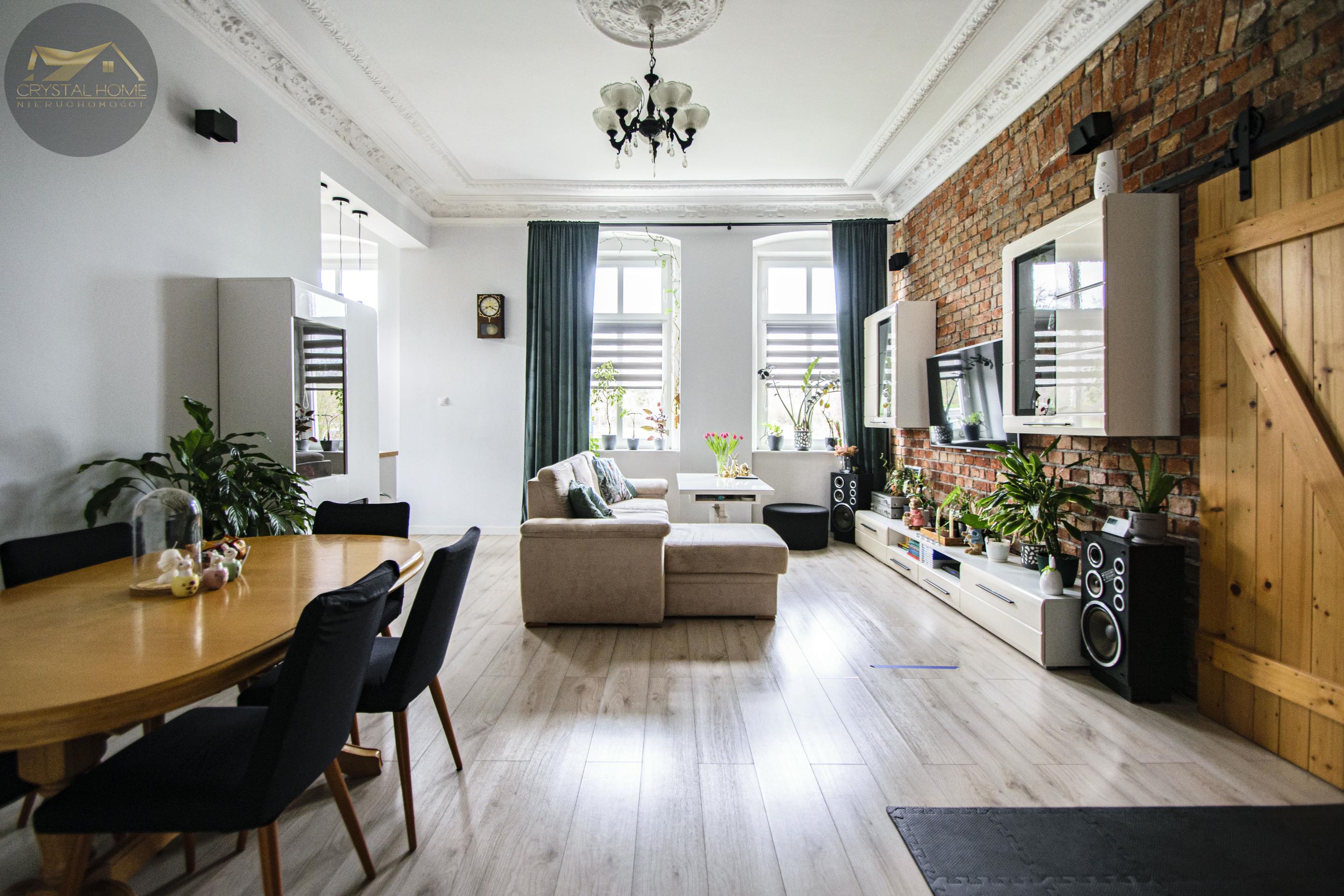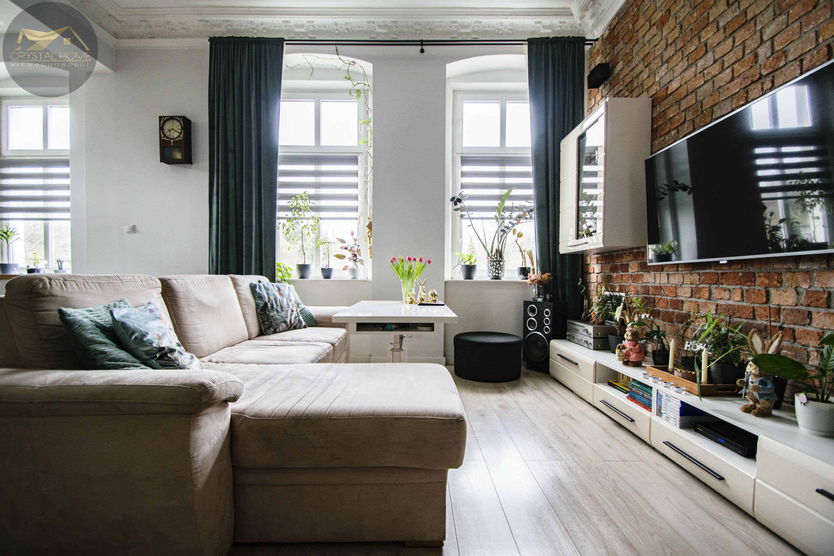 To, co wyróżnia tę nieruchomość, to niepowtarzalny klimat wnętrza. Odsłonięta, oryginalna cegła oraz dekoracyjne sztukaterie nadają przestrzeni elegancji i wyjątkowego charakteru.