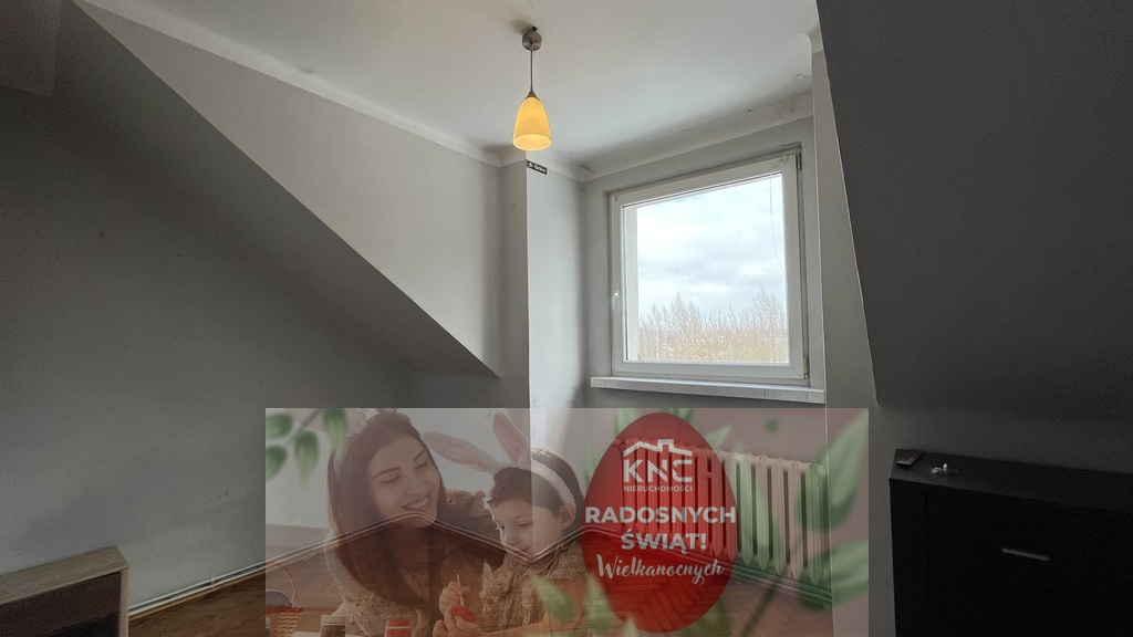 powierzchnia 57 m kw. dwupokojowe poddasze, dwu piętrowy blok.