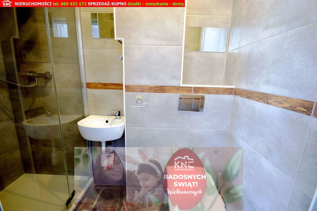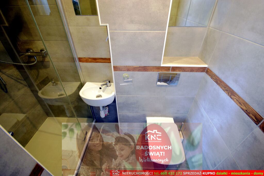 - Łazienka z WC: glazura i terakota, natrysk, umywalka, WC poddtynkowe;