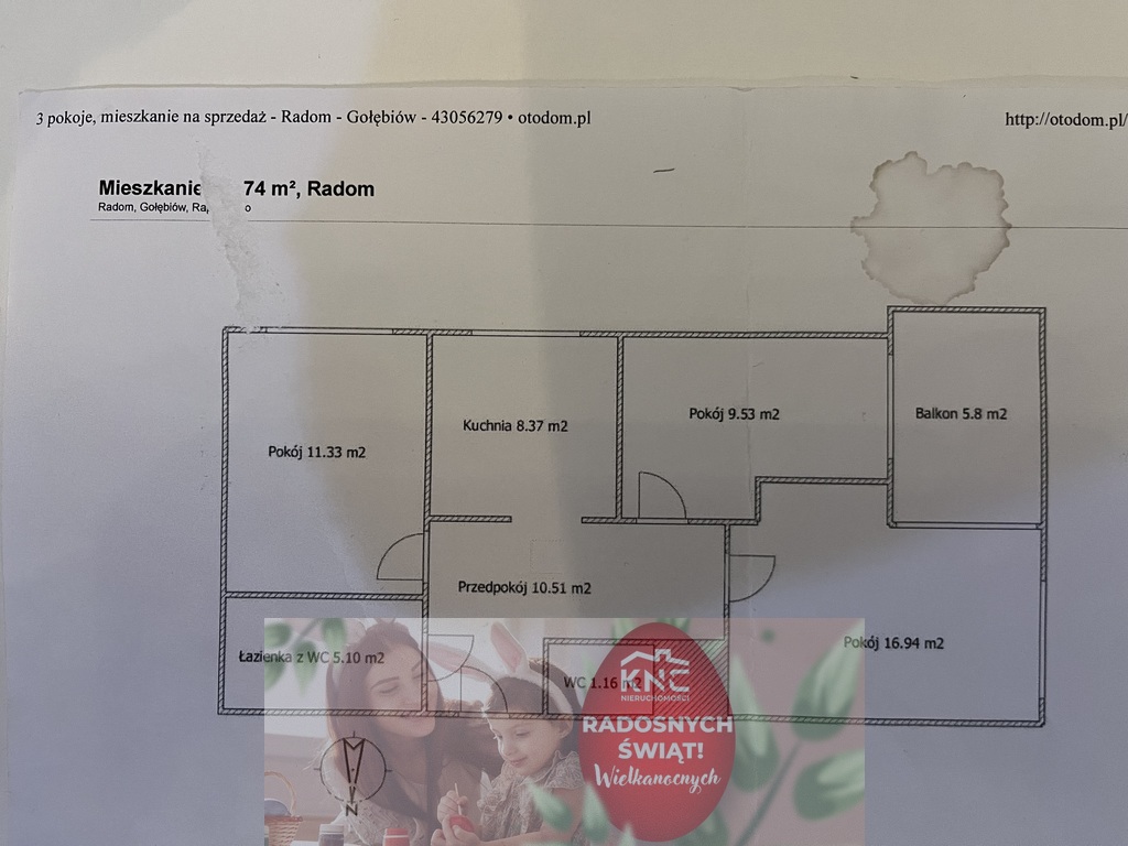 - mieszkanie składa się z przedpokoju o pow. 10,51 m kw, trzech pokoi o pow. 16,94 m kw, 9,53 m kw, 11,33 m kw, osobnej widnej kuchni o pow. 8,37 m kw, łazienki z wc o pow, 5,10 m kw, oraz oddzielnego wc o pow. 1,16 m kw, oraz balkonu o pow. 5,8 m kw. Do mieszkania przynależy komórka lokatorska w cenie mieszkania oraz miejsce parkingowe w garażu podziemnym dodatkowo płatne 60000 tys. zł.