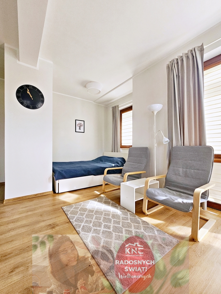 Co więcej - nieruchomość tą wyróżnia doskonała lokalizacja na uboczu miejscowości turystycznej jaką jest Nałęczów. Blisko sklepów, punktów usługowych, terenów spacerowych oraz ścieżek rowerowych, ale jednak nie w samym centrum często zatłoczonego miejsca, pełnego turystów i kuracjuszy. Z balkonu podziwiamy tu spokojne osiedle oraz łąki i lasy rozpościerające się wokół.