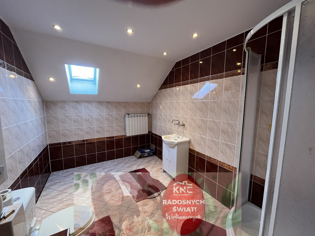 - dwa piętra górne stanowią pomieszczenia mieszkalne. Pierwsze piętro to łazienka o pow. 9 m2, kuchnia o pow. 13,5 m2 przy której jest jadalnia o pow. 14,5 m2 (opcjonalnie można przeznaczyć na pokój), trzy pokoje o pow. 30 m2, 12 m2, 21,5 m2. oraz taras o pow. 33,5 m2 zabudowany murowanymi ścianami. Drugie piętro domu to korytarz o pow. 10 m2, pomieszczenie do adaptacji na kuchnie o pow. 10 m2, trzy pokoje o pow. 29 m2, 29 m2, 19 m2. łazienka o pow. 7,5 m2. Do części mieszkalnej prowadzi klatka schodowa na którą wchodzimy od środka z części handlowo-usługowej jak również od strony podwórka od tyłu budynku.