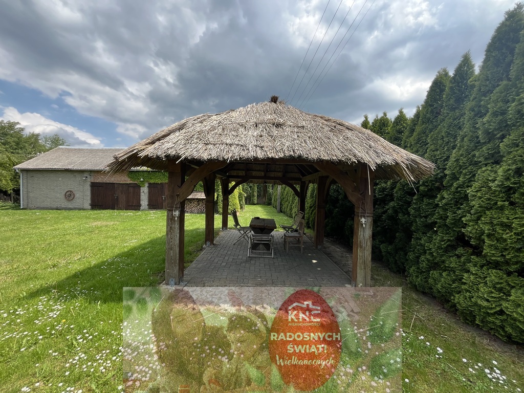 -na posesji oprócz domu znajduje się drewniana altana o pow. 14 m2 pokryta trzciną oraz murowana z czerwonej cegły stodoła o wymiarach 8 m x 16 m. Duży budynek składający się z dwóch oddzielnych pomieszczeń o wymiarach 6 m x 6 m oraz 11,5 m x 6,8 m. Budynek idealnie nadaje się do zaadoptowania nawet na cele mieszkaniowe.