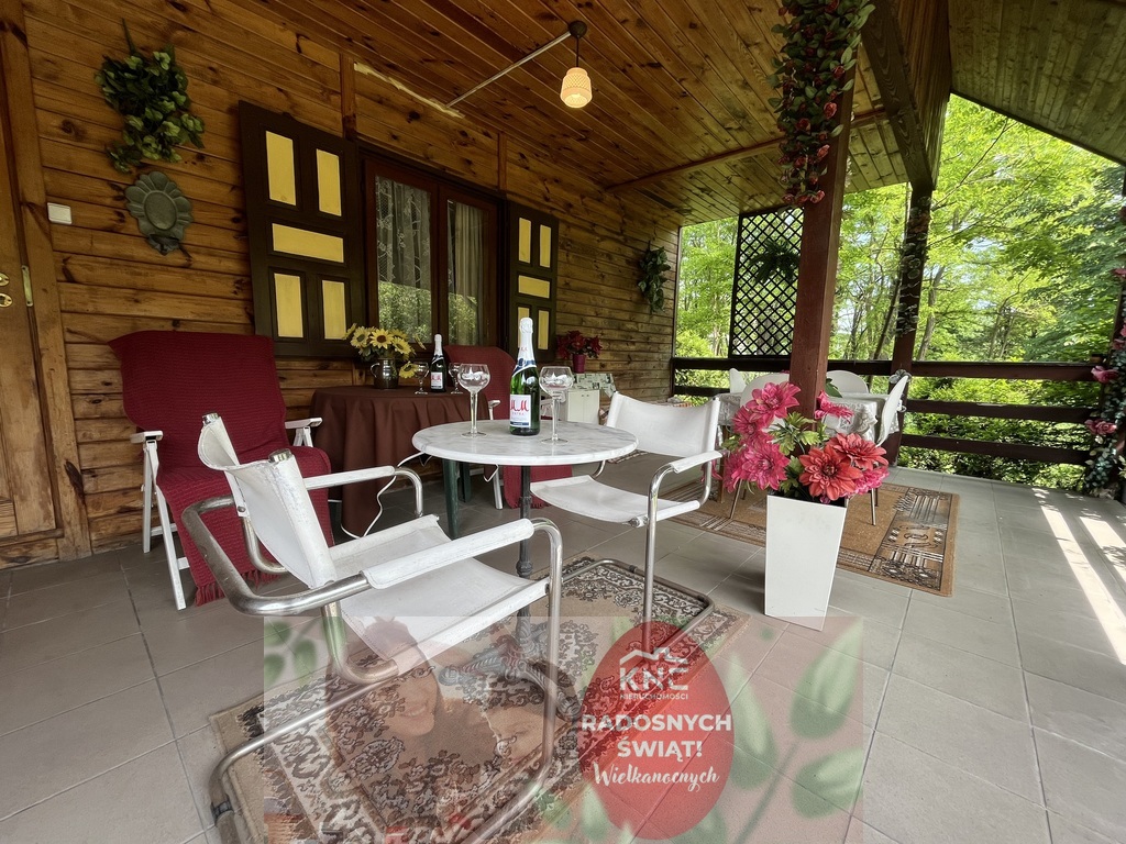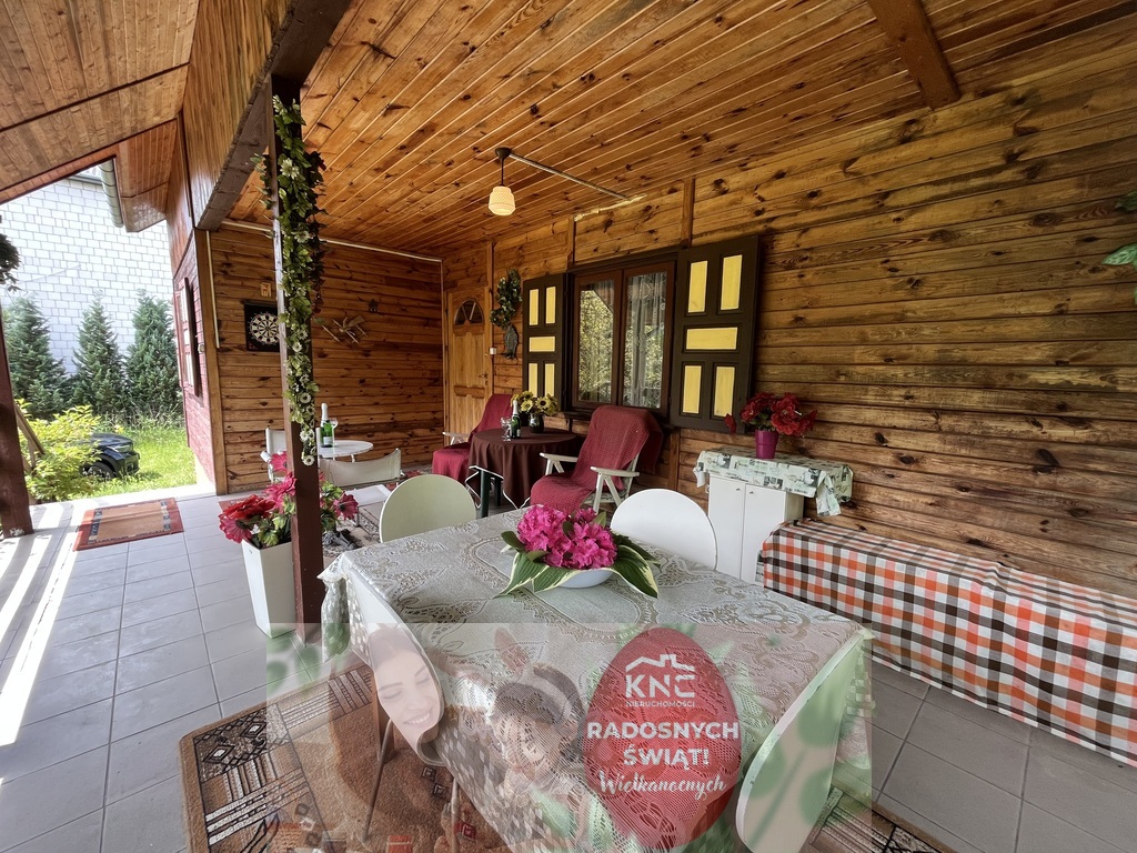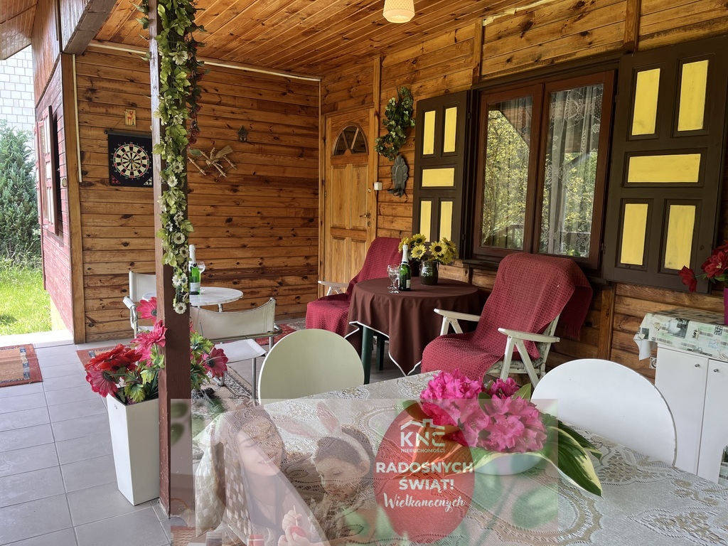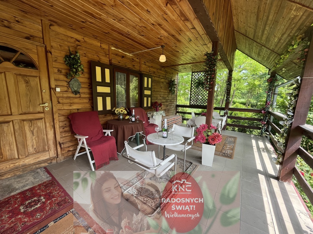 Dom wykonany z drewna o pow. użytkowej 87,5 m2 z dwoma tarasami na ogrodzonej pięknej zadbanej działce o pow. 1643 m 2 z bezpośrednim dostępem do rzeki Krępianka (idealnie nadająca się do odpoczynku) w Lipie Miklas gm. Lipsko woj. mazowieckie (blisko Wisły).