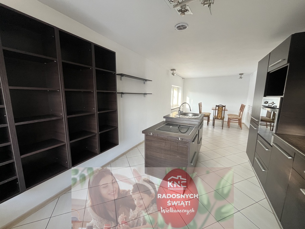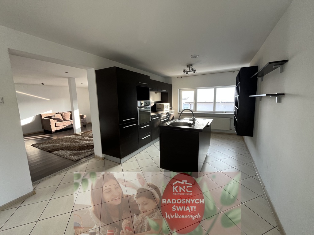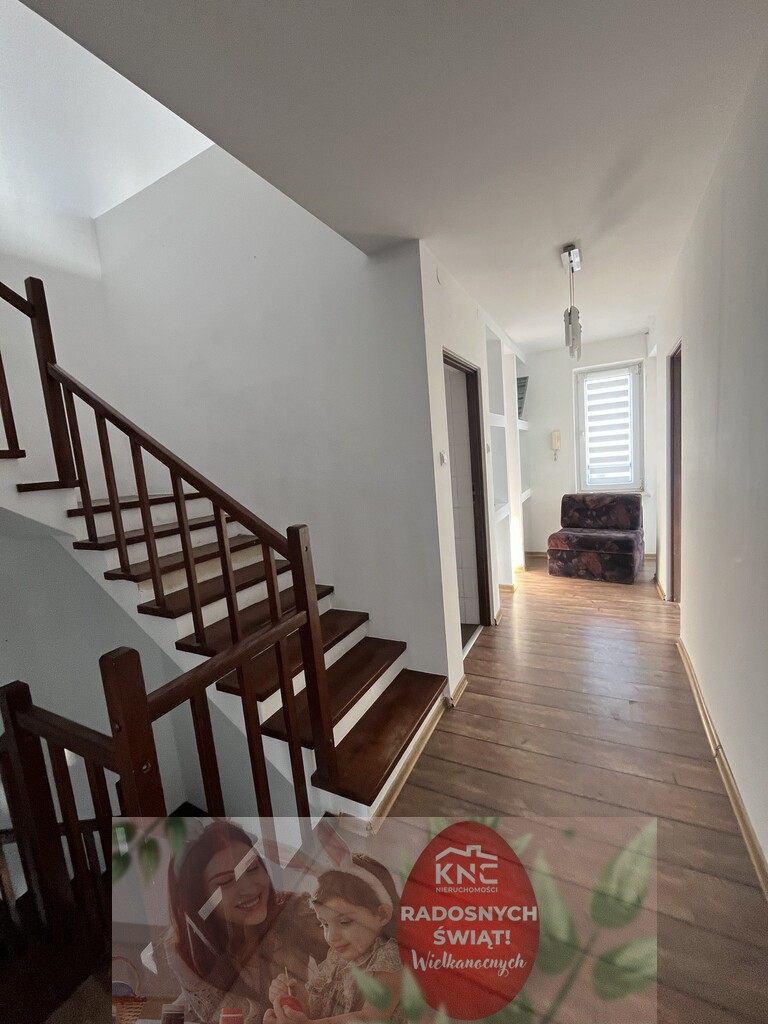duża i widna kuchniaprzestronny salonPiętra domu połączone są bardzo ładnymi, drewnianymi schodami. Pomieszczenia są widne, przestronne i ustawne.