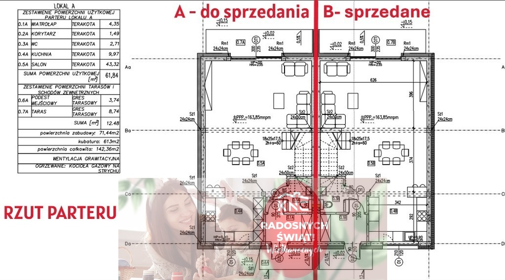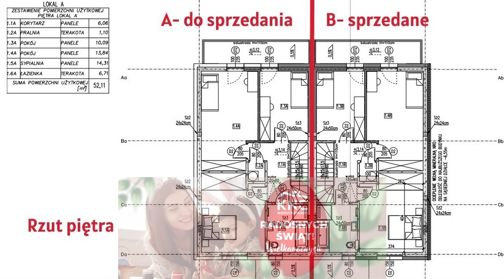 Powierzchnie parteru 52,11 m2 :