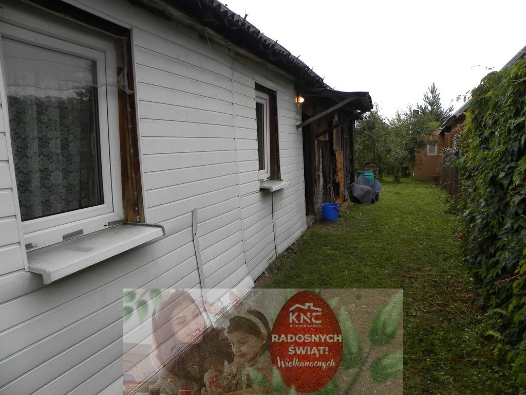 -wolnostojący dom z drewna obłożony z zewnątrz panelami do remontu na częściowo ogrodzonej działce z dwóch stron przylegającej do drogi asfaltowej.