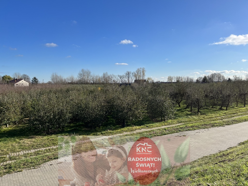 - dom znajduje się na działce o szerokości 21 m i długości 180 m. Dziełka obsadzone jest sadem jabłoni owocujących. Działka od tyłu przylega bezpośrednio do drogi technicznej biegnącej bezpośrednio przy wale przeciwpowodziowym rzeki Wisły. Działka nie ogrodzona. Sąsiednie działki stanowią sady obsadzone jabłoniami.