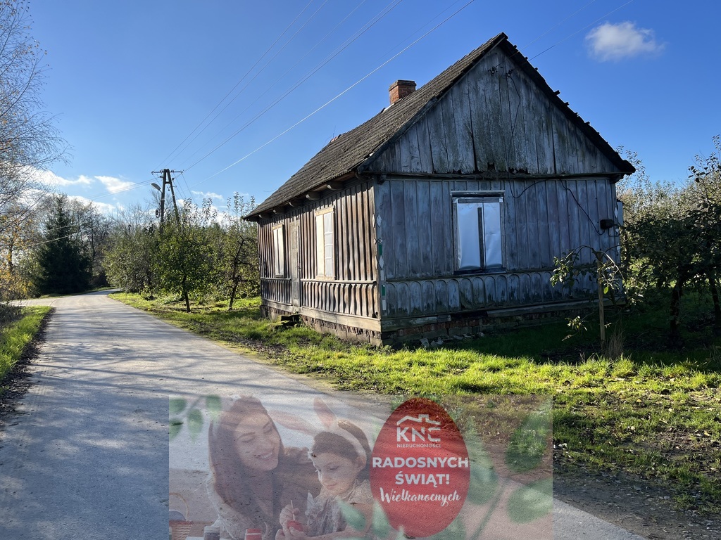 Nowa cena. Dom wolnostojący z drewna do remontu na działce 3780 m kw obsadzonej drzewami owocowymi jabłoniami w Zakrzowie gm. Łaziska pow. Opole Lubelskie .