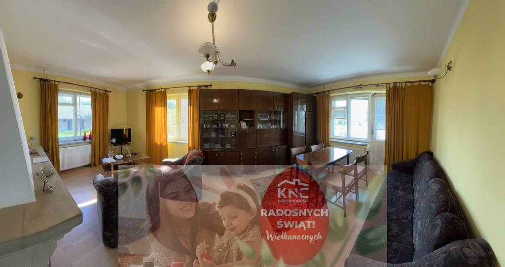-na parterze znajduje się weranda o pow. 10 m kw, przedpokój o pow. 6,5 m kw, kuchnia o pow. 12 m kw, duży pokój o pow. 27 m kw z kominkiem, łazienka 3,5 m kw.