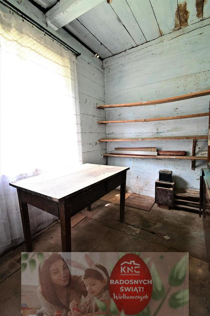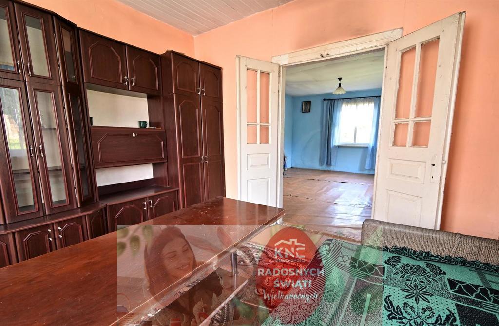 Budynek drewniany z lat '60, nieocieplony, pokryty blachą o powierzchni około 80 m² (wymiary: 7,5 m x 11 m). Składa się z czterech pokoi, w tym jeden z kuchnią oraz przedpokoju. W domu nie ma obecnie łazienki. Cały budynek do generalnego remontu.