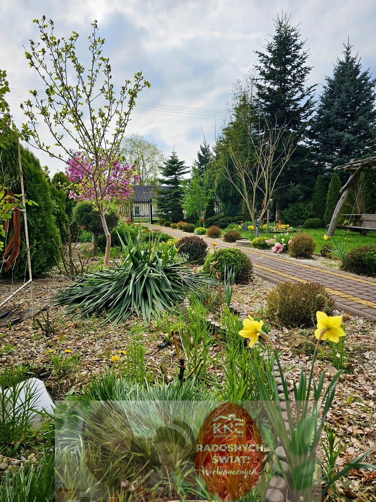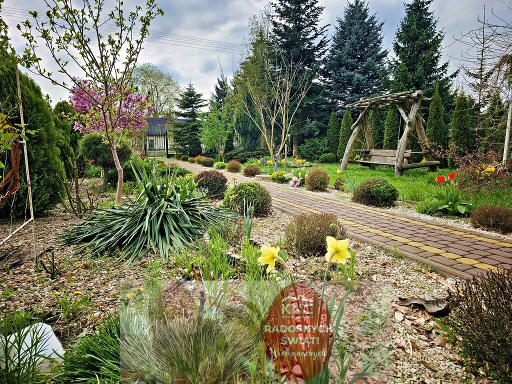 - nasadzenia: dużo drzew i krzewów ozdobnych oraz owocowych a w tylnej części działki około 11,5 ar lasu iglastego
