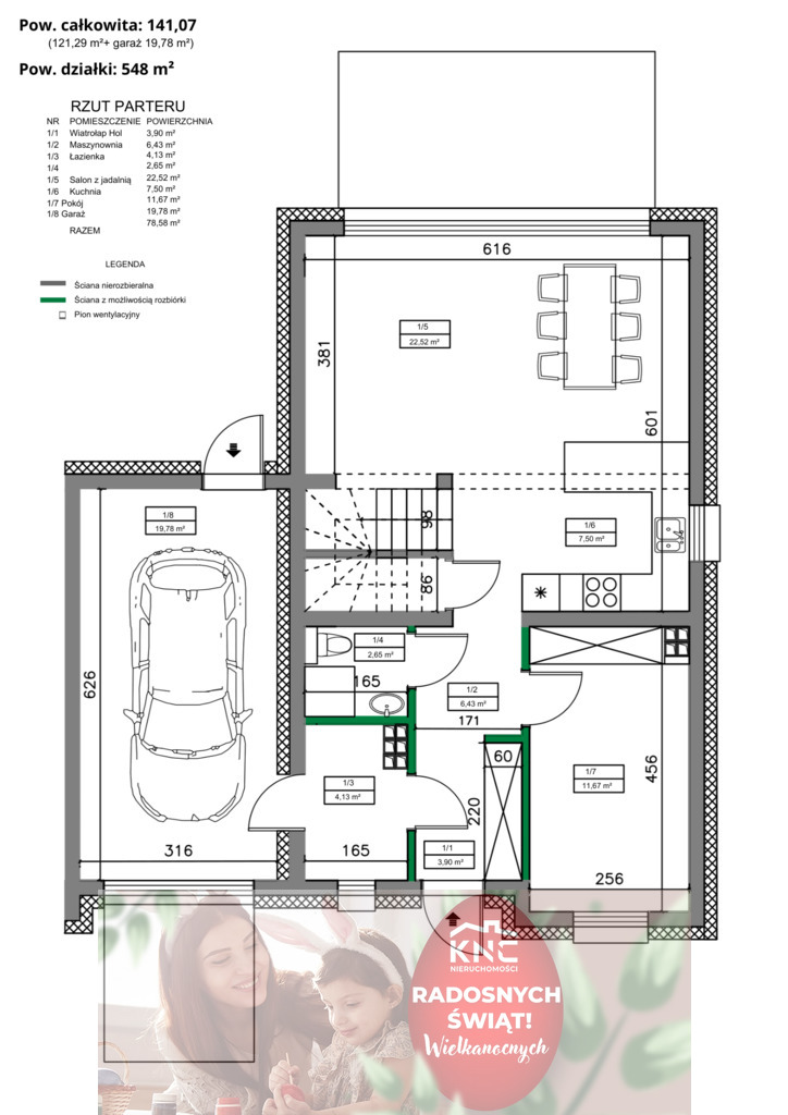 - 121 m2 powierzchni użytkowej + garaż 19.78 m2