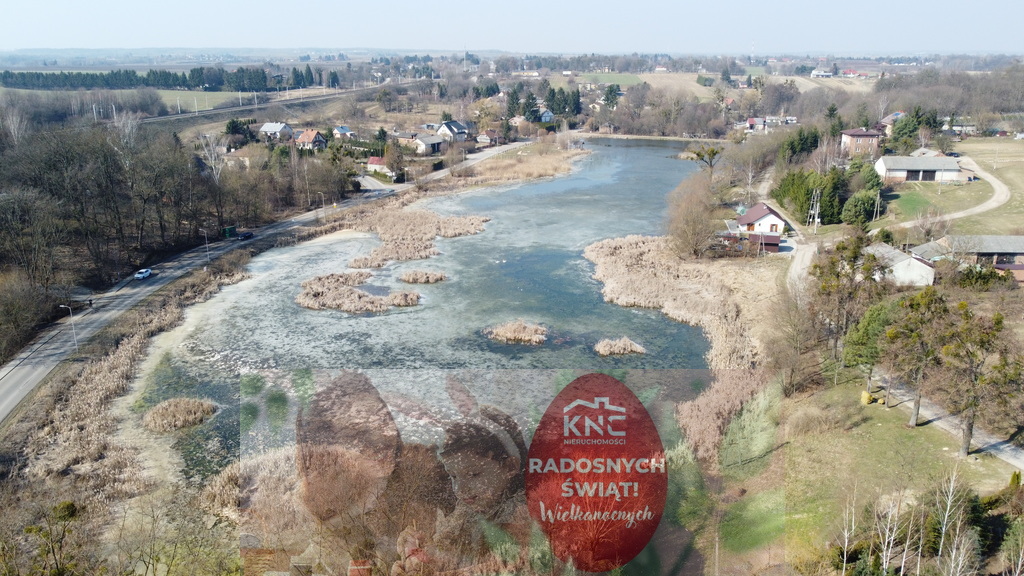 Duża działka o pow. 4,6 ha (46160 m2) praktycznie w całości stanowiąca zbiornik wodny znajdująca się przy drodze asfaltowej w centrum Klementowic gm. Kurów pow. puławski woj. lubelskie.