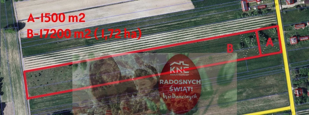 -działka 1,72 ha rolno budowlana w drugiej linii zabudowy 120 000 zł ( patrz galeria zdjęć działka B)