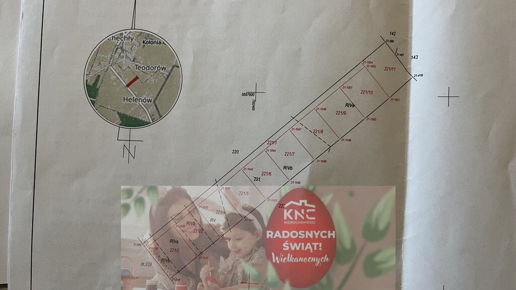 Działka budowlana o pow. 1570 m2 oraz dziewięć innych działek o pow. od 1308 m2 do 1802 m2 połączone wspólną drogą wewnętrzną z ustalonymi warunkami zabudowy i zagospodarowania terenu dla każdej z nich ( łączna powierzchnia 15700 m2) znajdujące się w m. Helenów (obręb Teodorów) gm. Policzna pow. zwoleński w bliskiej odległości od drogi krajowej 12 (m. Polesie) trasa Zwoleń-Puławy (odległość do Puław 16 km)