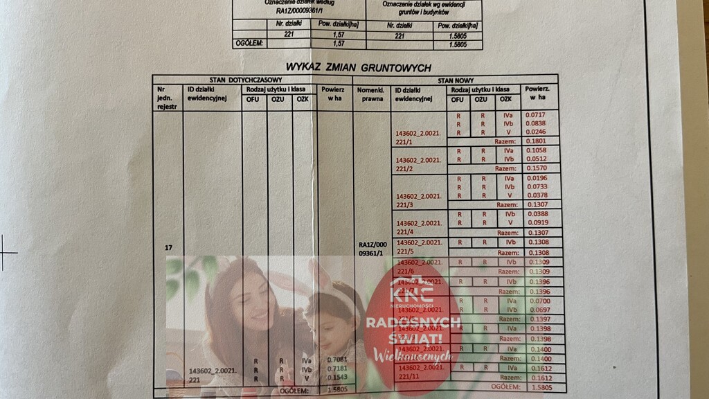 -powierzchnie kolejno - 1307 m2, 1308 m2, 1308 m2, 1309 m2, 1396 m2, 1398 m2, 1398 m2, 1399 m2, 1612 m2.