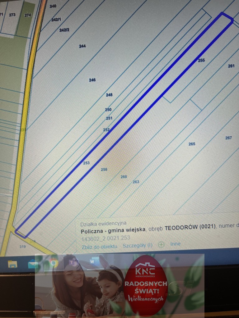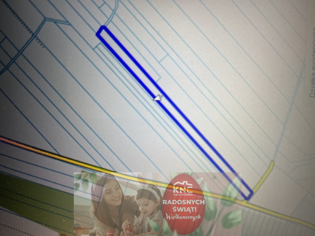 - szerokość działki to 24,5 m i długość ok. 800 m. Działka podzielona administracyjnie na dwie części.