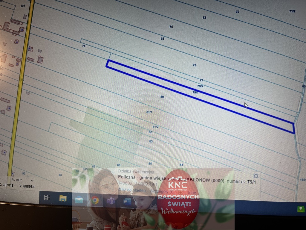 - działka rolna o pow. 7700 m2 położona przy utwardzonej drodze w m. Jabłonów gm. Policzna