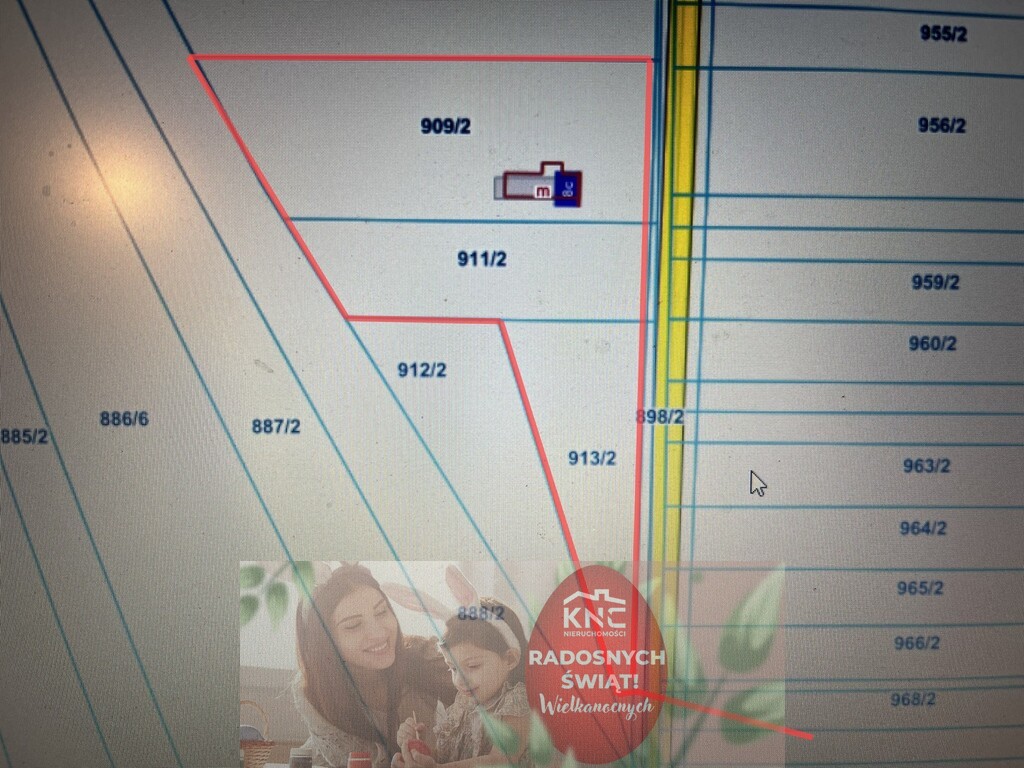 - działka o kształcie trójkąta o dłuższym boku długości 150 m wzdłuż drogi asfaltowej i krótszym o dł. 99m. Działka na lekkim wzniesieniu o płaskim terenie z pięknym widokiem wokół.