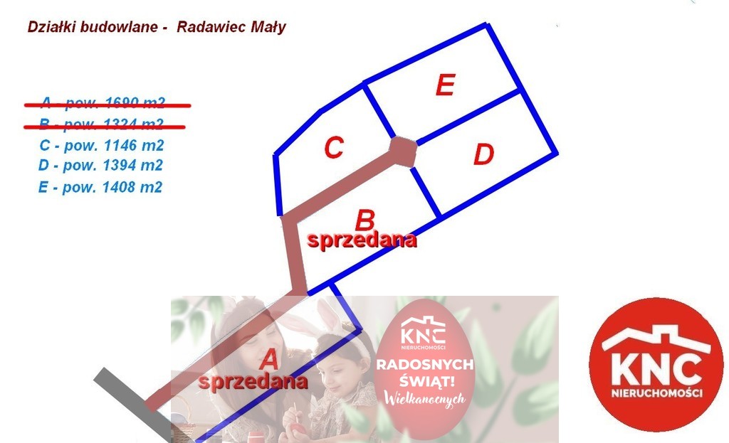 - działki świeżo po podziale IX. 2022r;