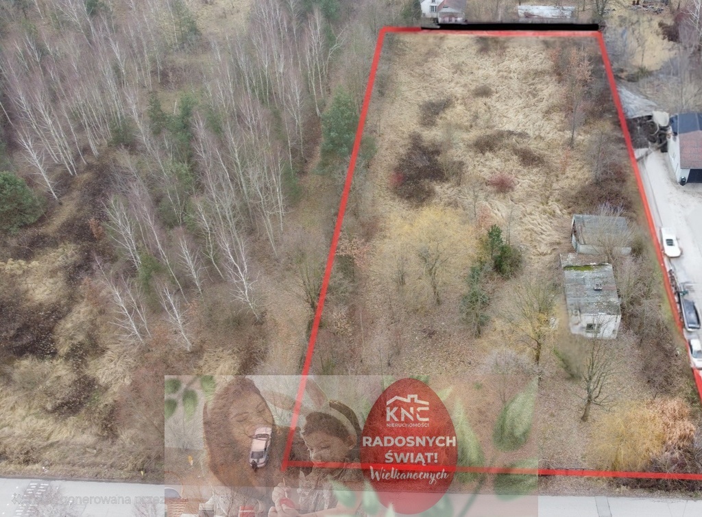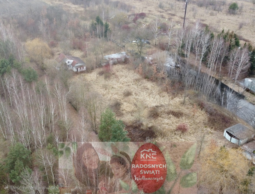- Duża działka o pow. 4587 m2 składająca się z trzech odrębnych części wraz z budynkiem mieszkalnym o pow. 40 m2 na jednej z nich.