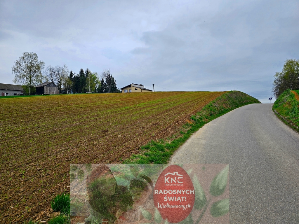 Nieruchomość znajduje się w pięknej, cichej i spokojnej okolicy. Działka ma kształt prostokąta i jest położona na wzniesieniu co powoduje, że rozpościera się z niej przepiękny widok na okolicę. Nieruchomość jest obecnie uprawiana.