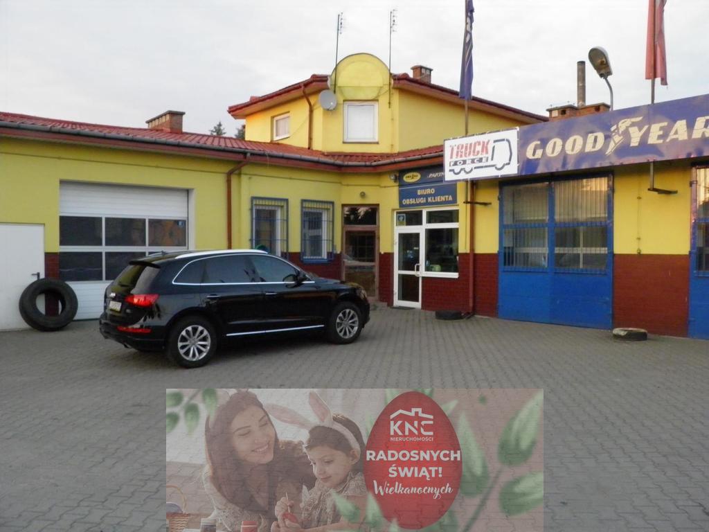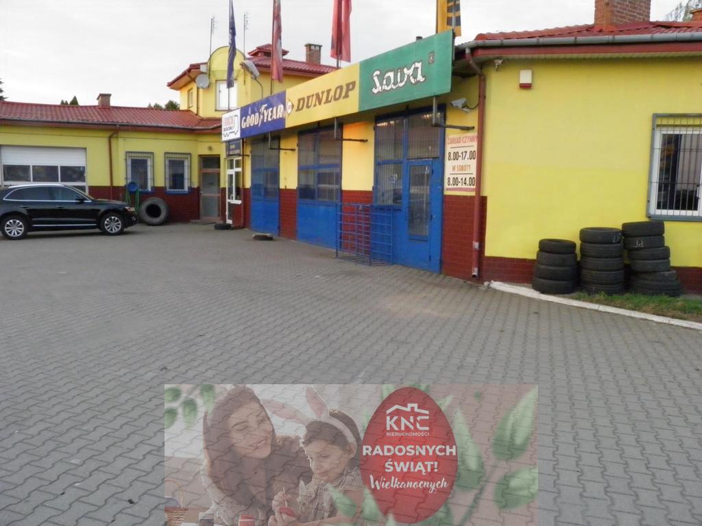 Nieruchomość zabudowana budynkiem zakładu montażu i sprzedaży opon, zgłoszony do użytkowania w 2002 r. obiekt jest częściowo podpiwniczony,parterowy. W piwnicy umiejscowiony jest magazyn zapasowy, na pierwszej kondygnacji znajdują się pomieszczenia: montażu opon, główny magazyn, zaplecze sanitarne, Pomieszczenia: ekspozycji opon, wulkanizacji, narzędziowni, sprężarki. Na piętrze znajdują się : pokój śniadań z kuchnią i łazienką oraz magazyn podręczny. Dwa parterowe skrzydła schodzące się pod kątem prostym, wydzielają plac manewrowy, przed halą montażu. Dach stromy o konstrukcji drewnianej, w narożnym budynku wyniesiony ponad skrzydła.