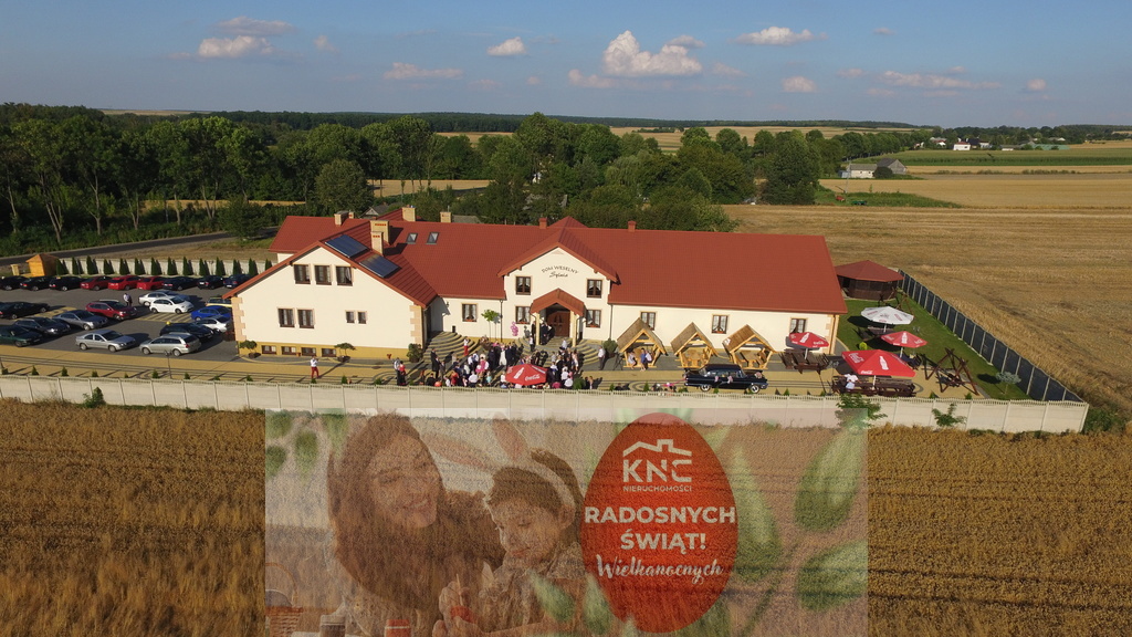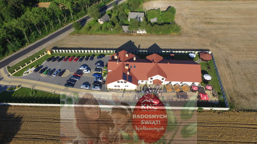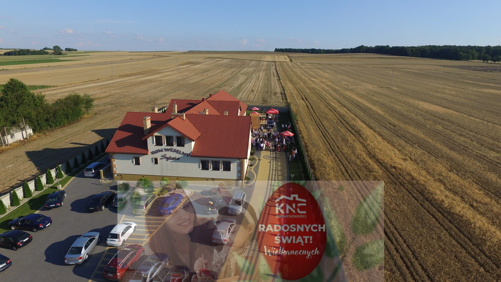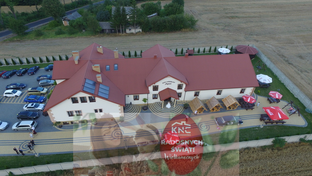 Dom weselno-bankietowy o pow. 1500m2, przystosowana do organizacji dużych imprez (do 450 osób) wraz z zapleczem gastronomicznym i hotelem.