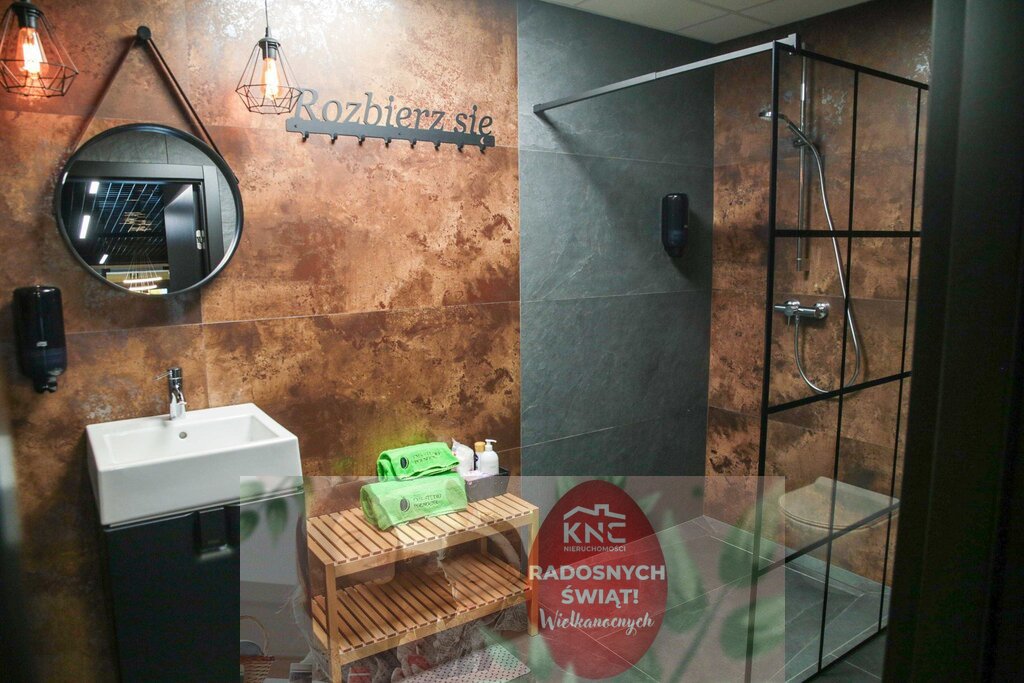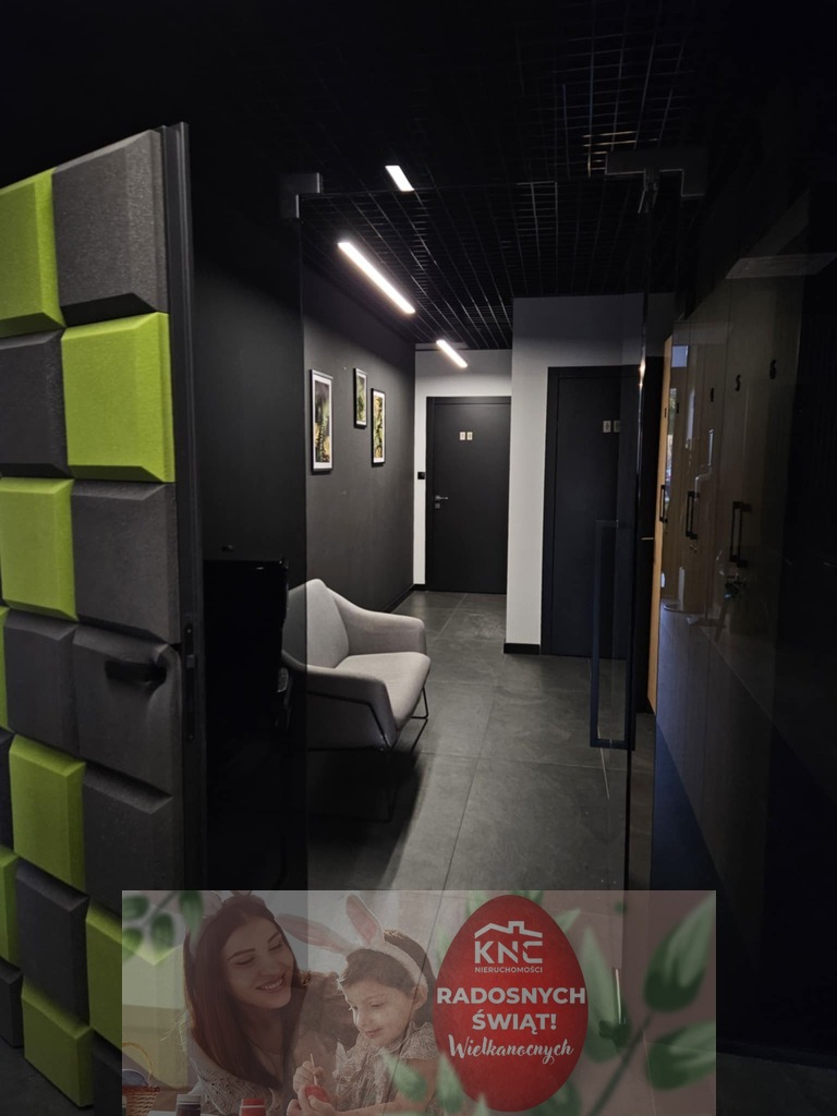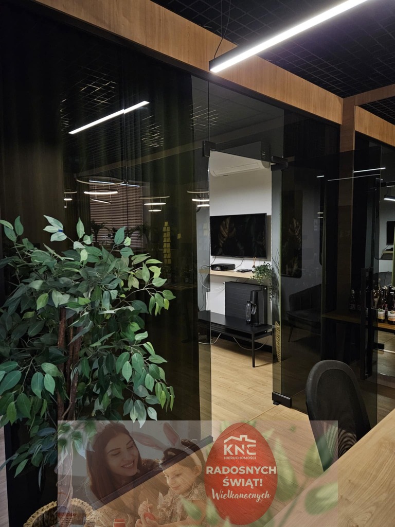 Przestrzeń o powierzchni 124 m², w której znajduje się strefa biurowa z pięknymi przeszkleniami, otwarta część typu openspace, toaleta, pomieszczenie socjalne i magazynek.