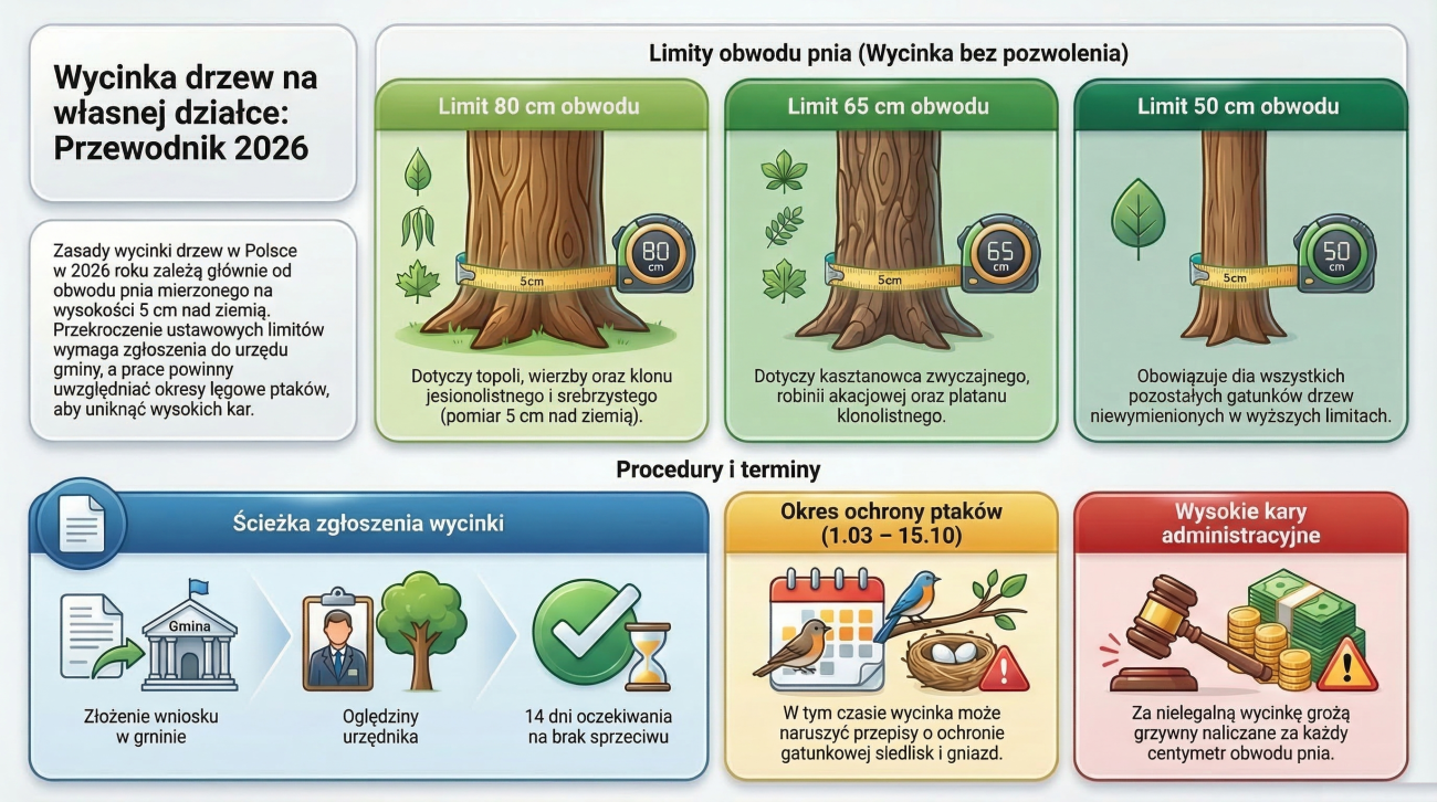 Wycinka drzew na działce w 2026 roku – kompletny przewodnik po przepisach